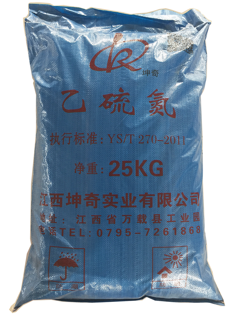 主要用途:乙硫氮的捕收性能与黄药及黑药类似,但与黄药、黑药相比,乙硫氮具有捕收能力强,浮选速度快、药剂用量省等特点。由于其对铁矿的捕收能力很弱,所以乙硫基在硫化矿浮选中又具有良好的选择性。在铜、铅、锑及其它金属硫化矿的浮选中具有更加优于黄药和黑药的选别效果。该品还可用于金属冶炼提纯,也可在橡胶工业上用作促进剂。